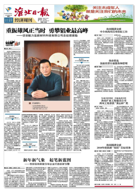 【概要描述】3月1日,淮北日报《经济周刑》版面发表了,安徽力����� �������Ƴ����������� �������Ƴ������������ �������Ƴ�������幕新材料科技有限公司梁总经理专题报导。